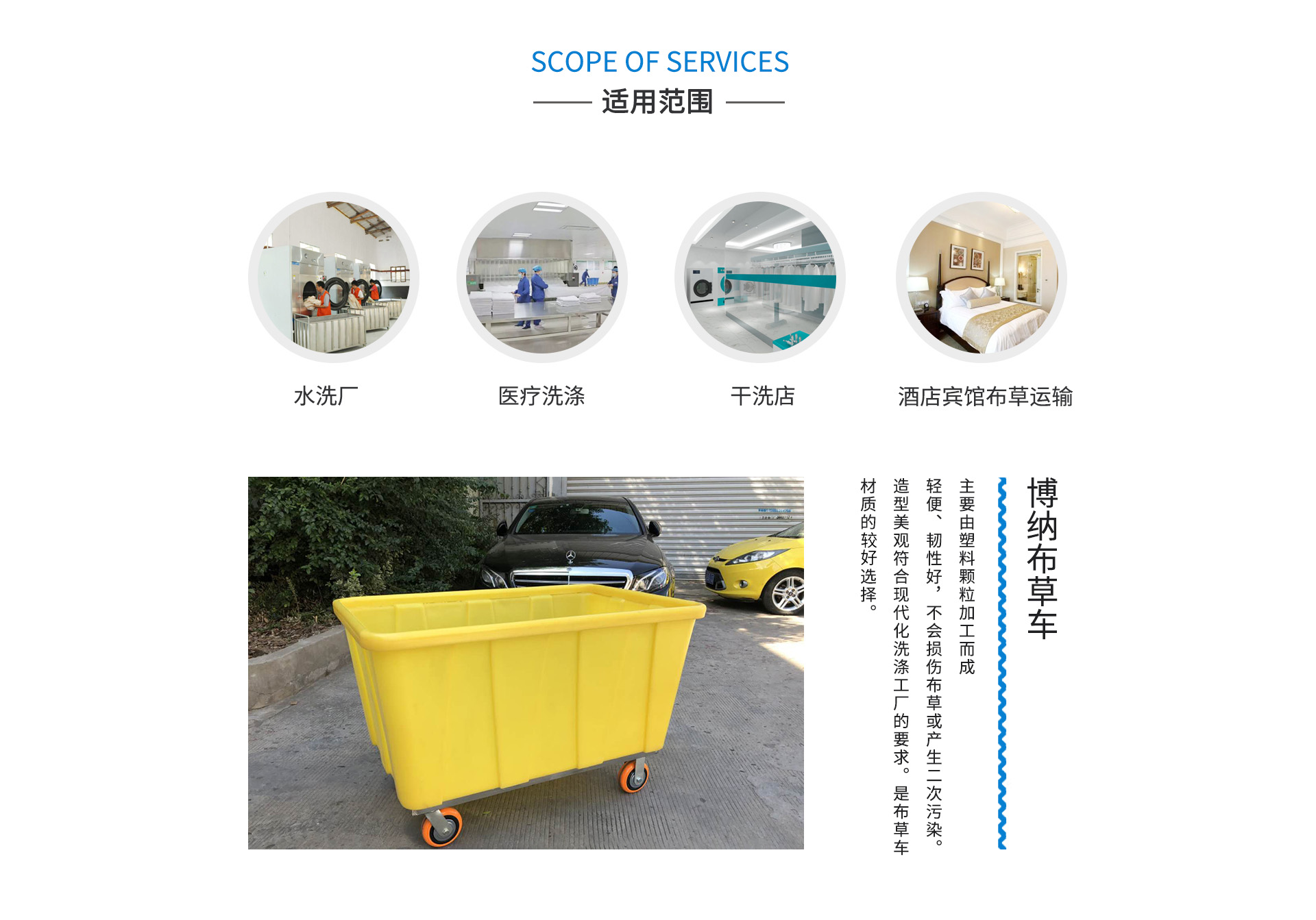芜湖市博纳塑胶制品有限公司,一家从事笼车,布草车,保温箱等滚塑制品 的生产厂家,也可为洗衣厂提供物流方案。我司已形成集研发、设计、生产、销售、自营出口、售后服务于一体的企业。自成立以来,我们的产品得到国内外客户的高度赞赏。我们在生产塑胶产品中始终坚持:互利,共赢的原则,让您享受无忧采购。我厂货源充足,价格合理,服务周到,在市场上具有较强的竞争优势。并取得SGS检测报告.UL、CUL认证,达到欧盟ROHS环保标准。各种材质、颜色、性能、规格均可满足客户的特殊要求。也可以根据客户的特定产品提供合理的解决方案,或进行相关定制。